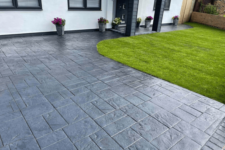 Imprinted Concrete is a decorative paving system where freshly laid concrete is patterned and textured to look like natural materials such as stone, slate, brick, or cobbles. Special moulds are pressed into the surface before it hardens, and colour hardeners and sealants are applied to create a durable, attractive finish. It provides a low-maintenance, hard-wearing surface ideal for driveways, patios, and pathways.